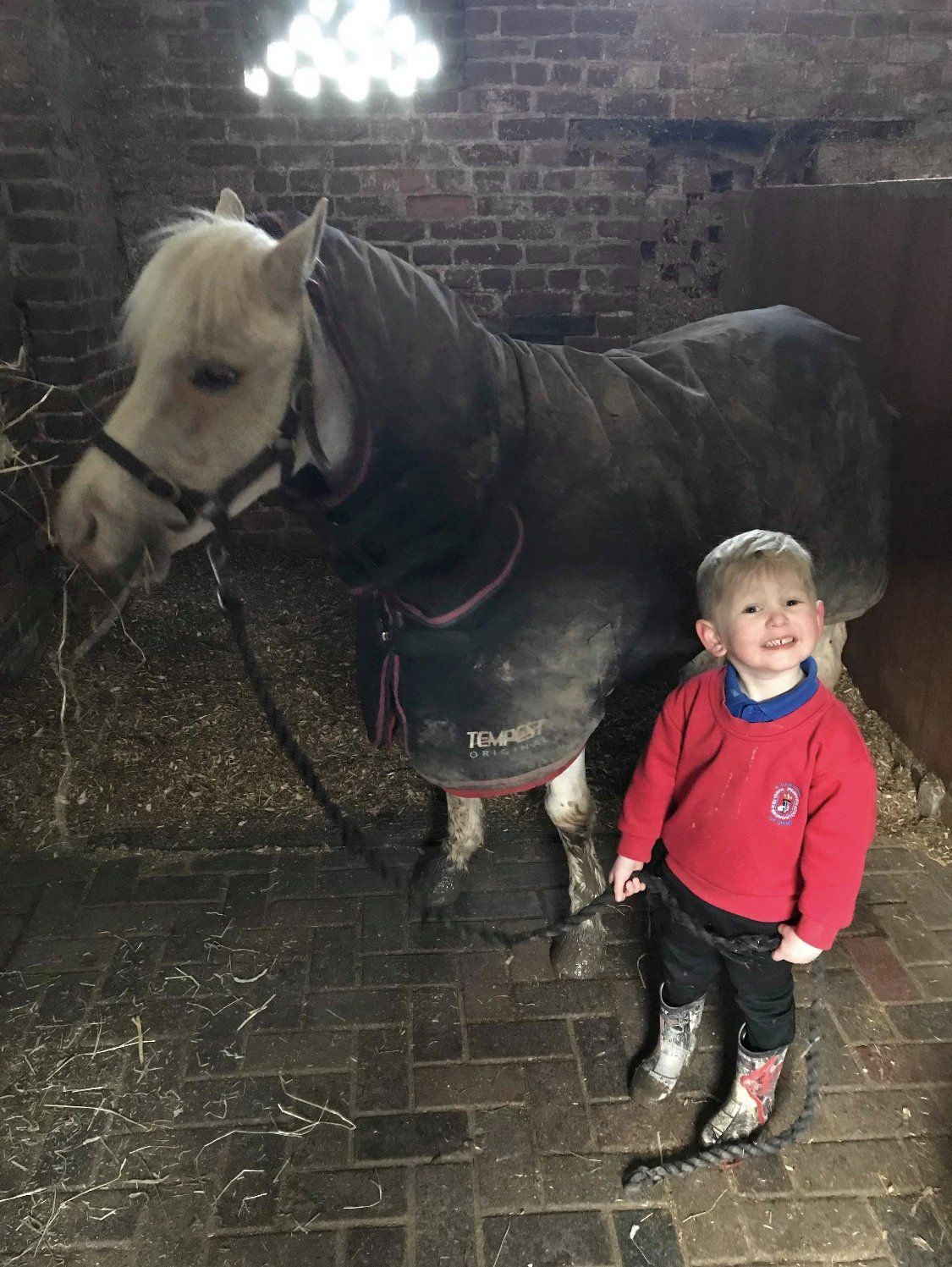 Hi, my name is jayden Wilson and I have recently turned 2 years old, I have a 4 year old Welsh pony and my very own special 1 eyed foal Hunter who is 8 months old. I have been riding since I turned 6 months old, I absolutely love going down the field and helping mummy see to the ponies, we have 4 in total, the other 2 being my mummies! I enjoy taking chance out on hacks and we are starting to go out longer everytime, I have fallen of chance a few times when she's been feeling a bit fresh and mummy didn't manage to catch me in time, but straight back on and we are going again! I now enjoy trotting and making lots of dinosaur sounds whilst we are skipping along, I can already trot by my self without my mummy holding onto me! Chancey absolutely loves jumping so hopefully in a few years we will be able to start then eventually attend some shows. My baby pony hunter unfortunately had his eye removed after the new year as he had bad trauma to it, but he's still the same and loves me going over to cuddle him, I always give him his food and stand there with him whilst he eats it, hunter will hopefully be my next pony up from chance as I grow into a big boy, he's very special to me and we have a great bond already. Thank you all for reading β€οΈβ€οΈ