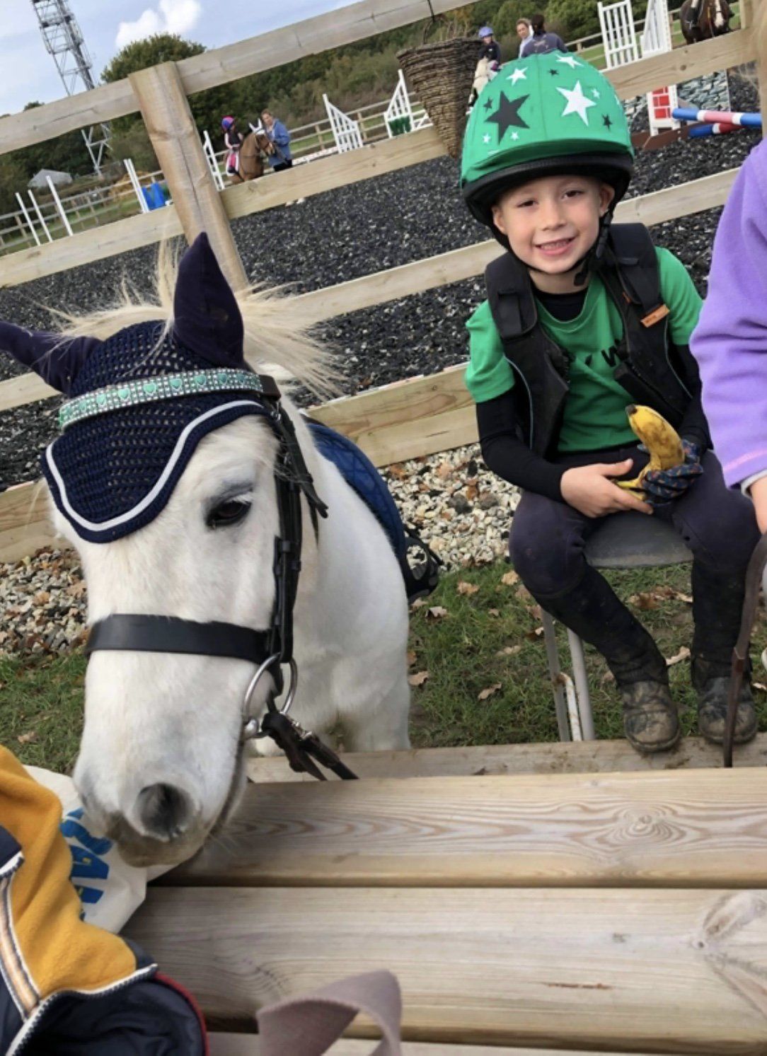 Hi, my name is Isaac and I am 4 years old. I have always been around horses as mummy rides and daddy works with racehorses. We live on a stud farm so I get to see the horses before and after school as they live in the paddocks next door to my house. I have a grey pony called Polo who I have a very special bond with. I did my first show when I was 18 months old and that’s when I got my first rosettes. Polo has taught me a lot when it comes to riding as he can be very mischievous!! I like to jump on him as I would like to become a jump jockey one day πI also like to steal a ride from the bigger horses occasionally. Last week I took Polo for a hack around the village and when I was not with him, I was catching up on Cheltenham, as I love going to the races and cheering on my favourite jockey, Daryl Jacob. Recently I went to the races and met my hero Daryl. It was very exciting and he even gave me a pair of his goggles. I hope to go to ‘jockey school’ when I am older so I can be just like him. This week I got a new riding hat which makes me feel like a real jockey. In the summer, I am hoping to get out and about with Polo to do some dressage and jumping classes.