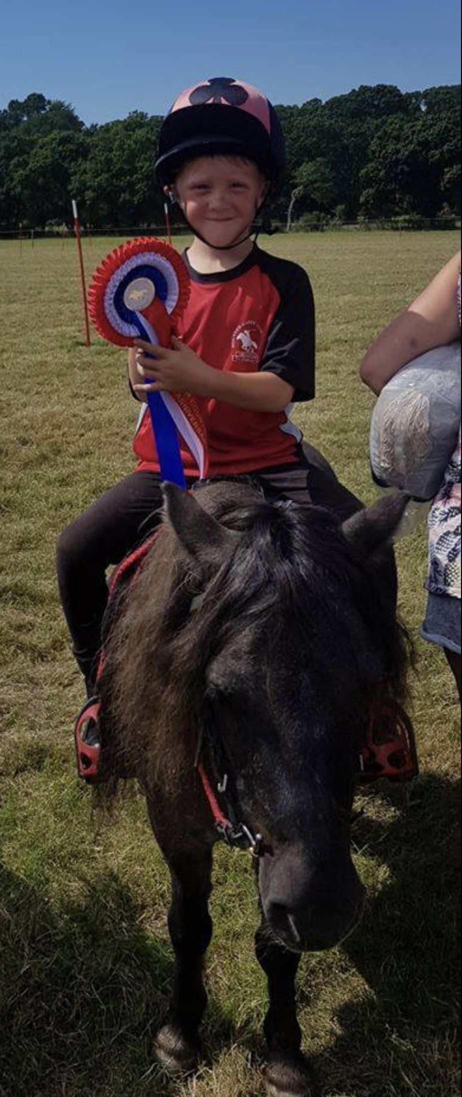 Hi, My name is Wyatt and I am 5 years old. My shetland is called George and he is amazing. We are very lucky to loan him as he is a super star. I ride George off the lead rein and he looks after me. Everywhere we go everyone just loves to see George. We call him Gorgeous George. I have loved riding since I was a baby and I have always been around horses as my older sister also rides. We keep our horses on a small livery yard where we can enjoy our ponies with friends. I have had George since October 2019 - I was lucky enough to ride him before we got him on loan so we have been having fun together since I was 4. Before George I had a Welsh section A called kezzie who took me to my first pony camp in 2018. I do everything with George. I take care of him every day and make sure he has everything he needs. We go to pony club lessons together where we try and catch up with all the big kids ! We have been cross country jumping and we attend show jumping shows where we just have the best time together. Even when things go wrong George patiently waits for me to jump back on π We have big plans for 2020 - when hopefully we can get back out having fun - we are hoping to make it to the Sunshine Tour Championships, we would like to do a beach trip and enjoy pony camp. I love to ride and be around horses. George and I have lots of fun ahead and when my legs get too long I plan to steal my sisters pony !! Wyatt & George πππ