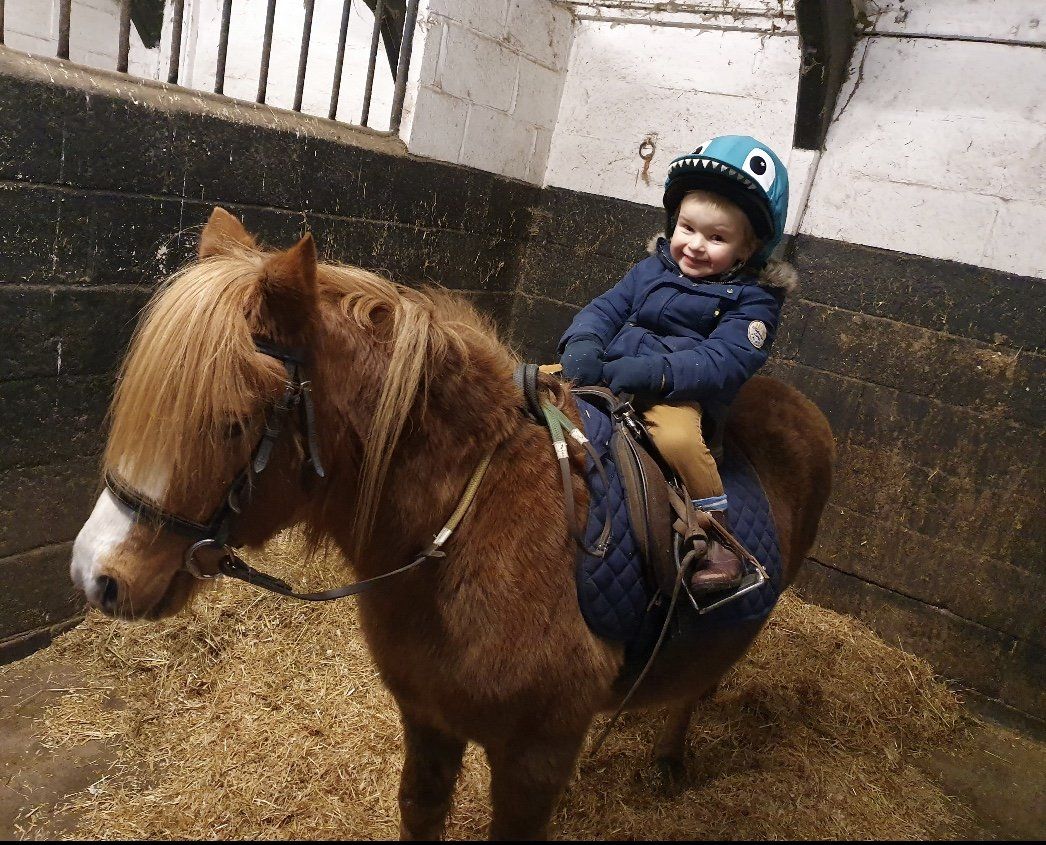 Hi, my name is jayden Wilson and I have recently turned 2 years old, I have a 4 year old Welsh pony and my very own special 1 eyed foal Hunter who is 8 months old. I have been riding since I turned 6 months old, I absolutely love going down the field and helping mummy see to the ponies, we have 4 in total, the other 2 being my mummies! I enjoy taking chance out on hacks and we are starting to go out longer everytime, I have fallen of chance a few times when she's been feeling a bit fresh and mummy didn't manage to catch me in time, but straight back on and we are going again! I now enjoy trotting and making lots of dinosaur sounds whilst we are skipping along, I can already trot by my self without my mummy holding onto me! Chancey absolutely loves jumping so hopefully in a few years we will be able to start then eventually attend some shows. My baby pony hunter unfortunately had his eye removed after the new year as he had bad trauma to it, but he's still the same and loves me going over to cuddle him, I always give him his food and stand there with him whilst he eats it, hunter will hopefully be my next pony up from chance as I grow into a big boy, he's very special to me and we have a great bond already. Thank you all for reading β€οΈβ€οΈ