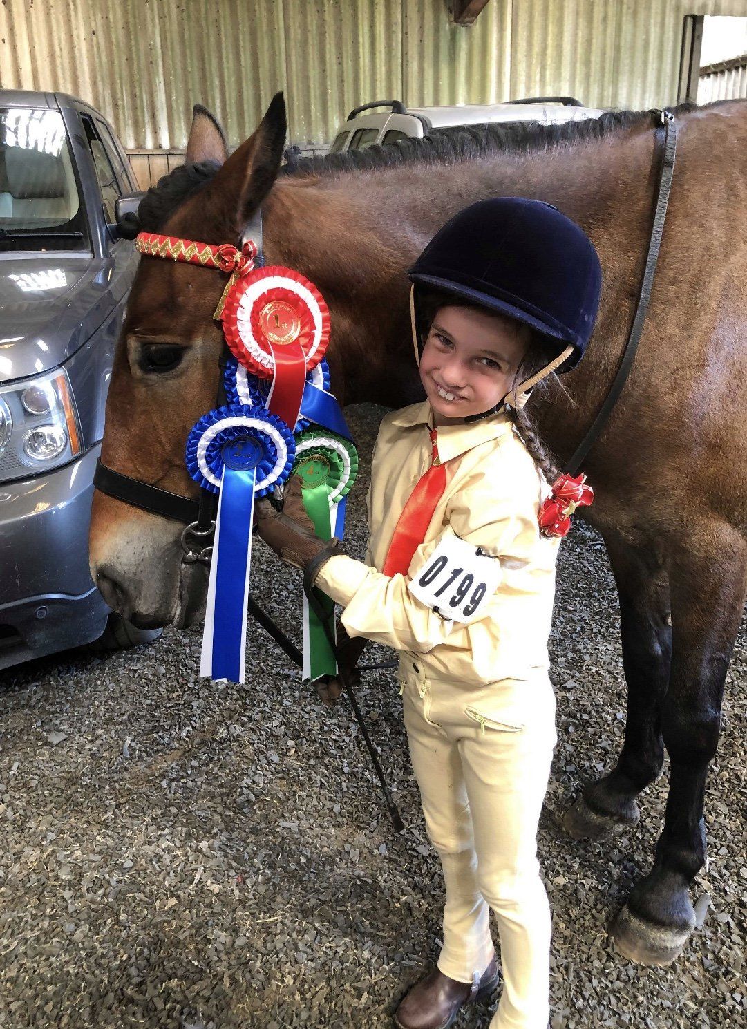 My name is Summer I am 6 years old. My pony is called Maggie she is a Welsh pony, she is 13 years old and 11hh. I started riding her when I was three and now we have her on full loan. I like to jump Maggie and we like going to shows. We have been to Equifest twice, the first year we got into the evening performance and last year we won the lead rein showjumping class. Sometimes my 5 year old brother Marshall rides Maggie and I ride Dinky, another pony at my yard. I sometimes ride Bertie, a 4 year old Welsh pony too. In March I jumped Maggie in our first class without mummy holding the reins! We had so much fun, Maggie is the best pony ever. Summer's mum says: at the moment we are lucky we can still see Maggie and look after her everyday, the children are just hacking out in walk and we are not jumping or riding off the lead to keep all riding low risk. We have an Instagram and Facebook page if you would like to follow our journey - Team Taylor Showing π