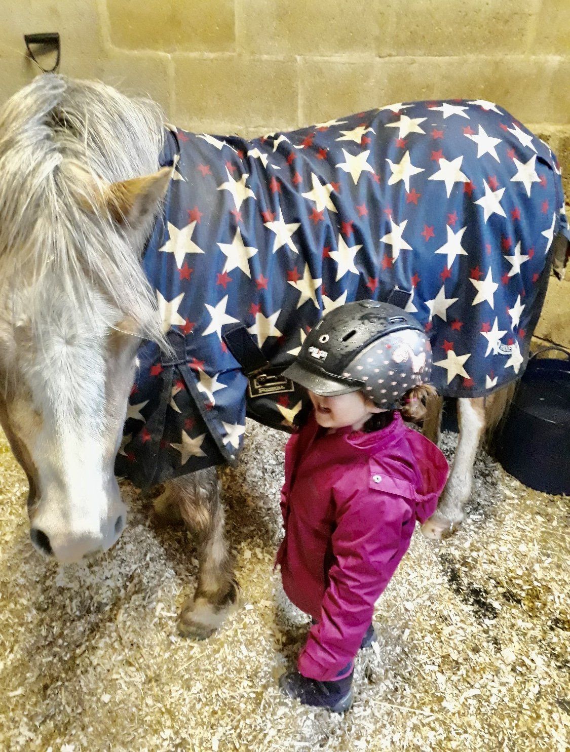Hello Everyone my name is Penelope and I will be three in a couple of months. My pony is called Nelly and we are just starting to go out on hacks around our village. My mummy has a pony called Higgins. He is very fat and greedy! I help my Daddy to muck out and feed the ponies everyday since I was really tiny. We are very lucky to have such a nice Daddy! He also leads me out but sometimes he has to run because Nelly is very fast! We were hoping to go to our first show this summer but we are very sad that they might not happen now but we will have lots of extra time to practice. I hope you like my photos as you can see I love playing at the stables! Penelope and Nelly xx