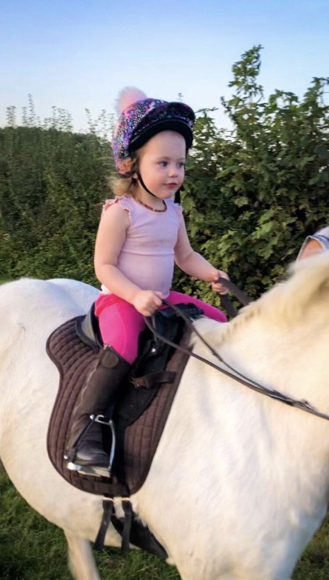 Hey my name is Lilly-May and I am 2 years old, but soon it's my birthday. I have three horses at my house called Hollie, Danny and Donald. Donald is my pony and he's my best friend, I love to ride my auntie Sarah's horses Hollie and Dan Dan as well. I first sat on Hollie when I was a tiny baby then my auntie got dan dan and I love riding him and going over poles like they were big jumps. Mummy and daddy got me Donald in August 2019 and I love to ride him all the time, I'm now practising for lead rein when I go to shows. I love to trot and I'm practising my up downs and soon I'm going to jump with him. I love to look after my donald and help out on the yard, giving him a bath is great fun. I will always make time for a cuddle with my Donald even though I can be tired after nursery. I love to ride him in from the field when hes been out playing, I love to give him his favourite treats when he's been a super good boy. I love to wear my auntie's rosettes and I'm soon going to win lots and lots of my own. I want to ride my Donald on the television like the big horses like John Whitaker. Donald,Dan Dan and Hollie are my best friends,I love them so much and giving them cuddles is my favourite thing in the world.