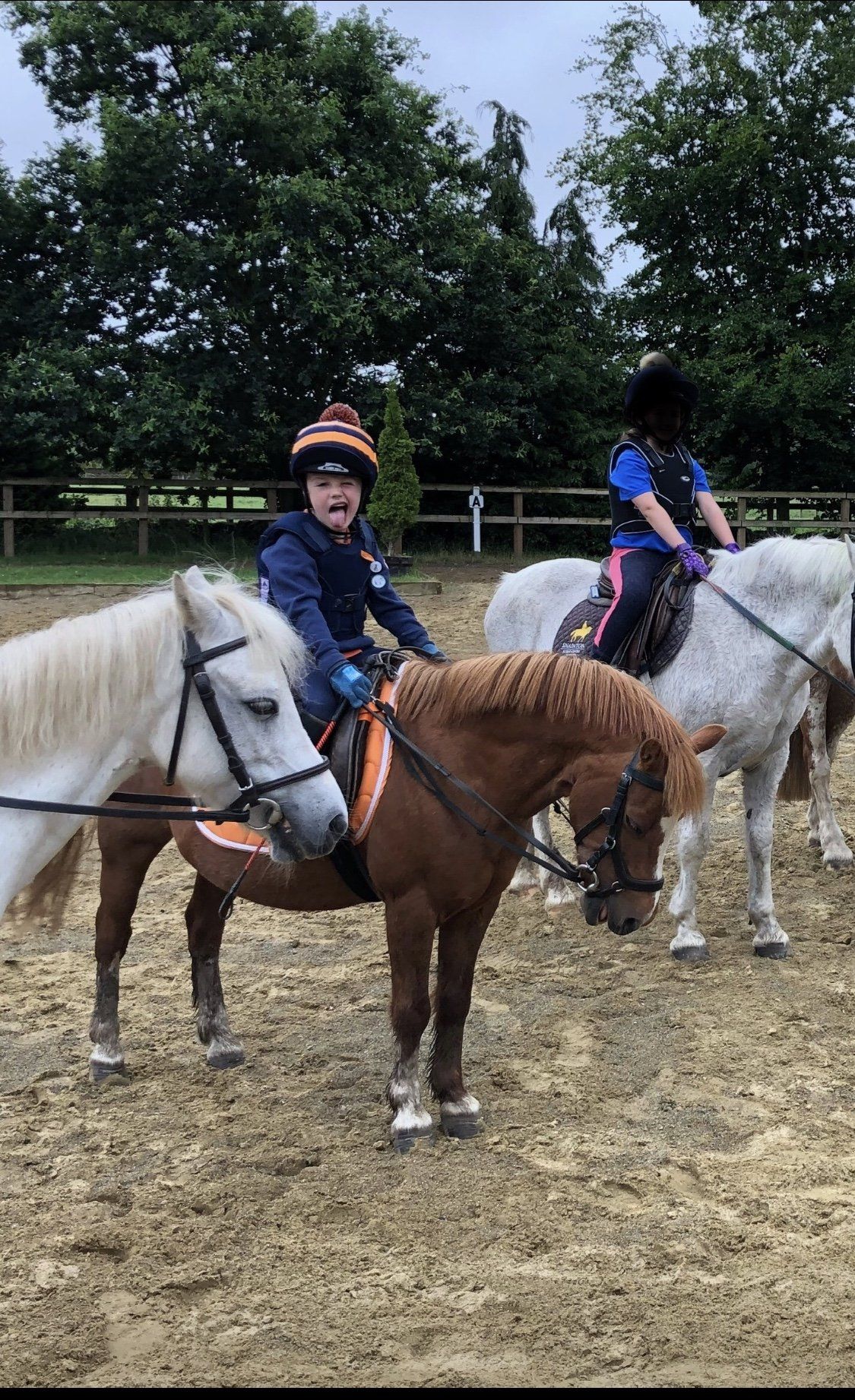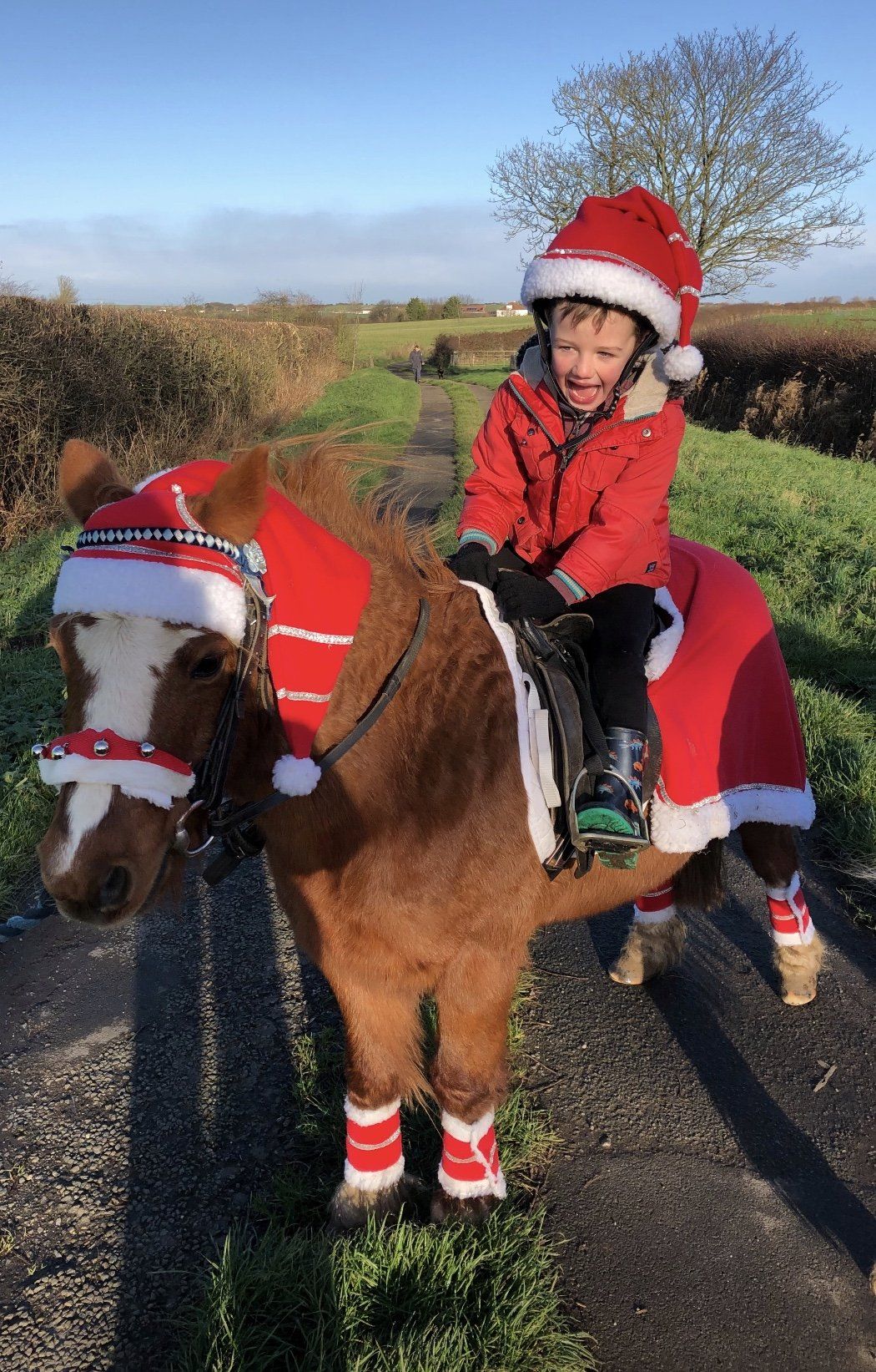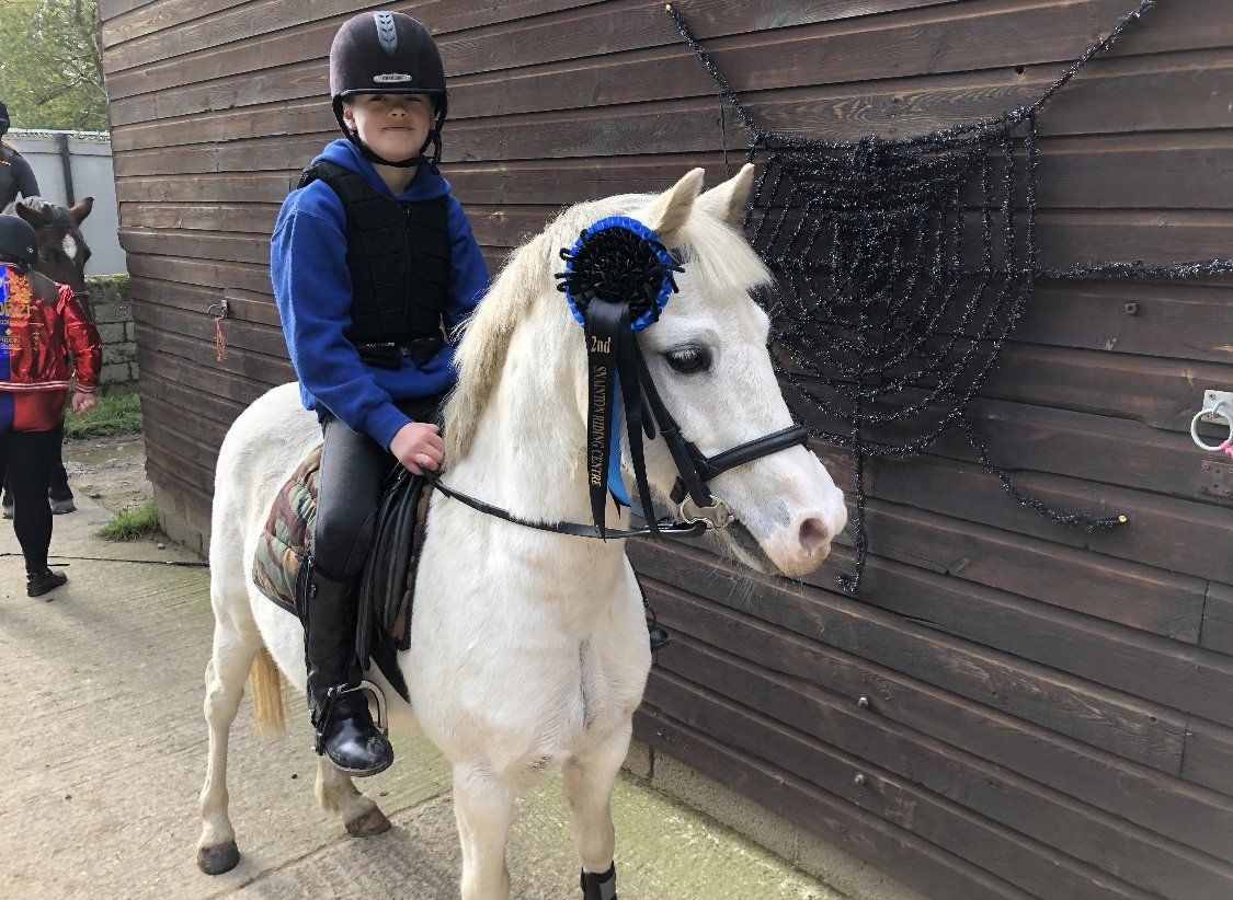 We love seeing the ponies everyday and giving them lots of cuddles. We love hacking so we like taking them out to different places. We took them to the forest recently on an adventure ride through the woods. Oliver really likes dressing up with Chester so we’ve done lots of fancy dress. We have riding lessons at Snainton Riding Centre, it’s fun getting to ride the riding school ponies too and we also go to pony club there. We did our first pony club camp this year, I was quite nervous but it was loads of fun! We enjoy taking the ponies to jumping competitions as well and we both came 2nd in our classes at the Halloween showjumping.