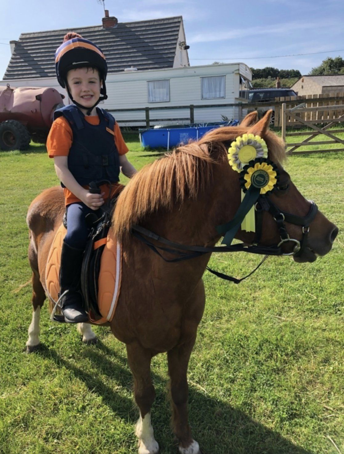 Hi, My name is Wyatt and I am 5 years old. My shetland is called George and he is amazing. We are very lucky to loan him as he is a super star. I ride George off the lead rein and he looks after me. Everywhere we go everyone just loves to see George. We call him Gorgeous George. I have loved riding since I was a baby and I have always been around horses as my older sister also rides. We keep our horses on a small livery yard where we can enjoy our ponies with friends. I have had George since October 2019 - I was lucky enough to ride him before we got him on loan so we have been having fun together since I was 4. Before George I had a Welsh section A called kezzie who took me to my first pony camp in 2018. I do everything with George. I take care of him every day and make sure he has everything he needs. We go to pony club lessons together where we try and catch up with all the big kids ! We have been cross country jumping and we attend show jumping shows where we just have the best time together. Even when things go wrong George patiently waits for me to jump back on π We have big plans for 2020 - when hopefully we can get back out having fun - we are hoping to make it to the Sunshine Tour Championships, we would like to do a beach trip and enjoy pony camp. I love to ride and be around horses. George and I have lots of fun ahead and when my legs get too long I plan to steal my sisters pony !! Wyatt & George πππ